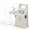 Регулировка уровня вакуума портативного хирургического отсасывателя осуществляется при помощи кругового регулятора. Модель оснащена защитой от перелива, которая предотвращает попадание лишней жидкости в насос.
