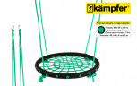 Качели-гнездо Kampfer выполнены из металлической рамы диаметром 60 сантиметров, с дополнительной защитной оплеткой ее бортиков, обтянутых прочным синтетическим канатом толщиной 10 мм выдерживающим нагрузку 100 кг. Плетеное синтетическое сидение качелей удобное и практичное, не собирает грязь и воду, при сильных загрязнениях его можно протереть.
